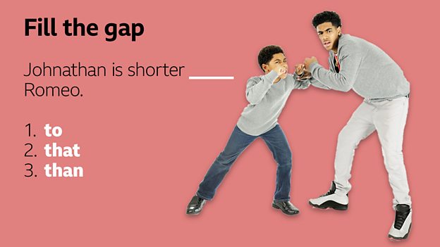 😊 The correct answer is 3) than. Johnathan is shorter than Romeo. 👏 Well done if you got that right! 🤔 Can you write a comparative sentence?