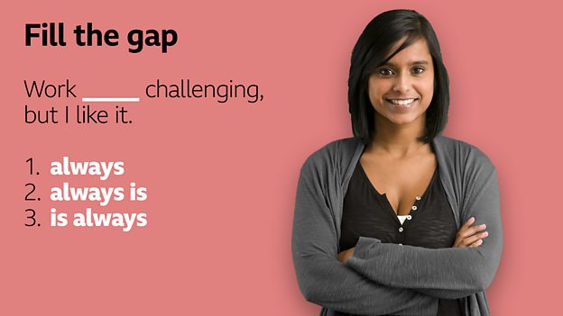 🤓 The correct answer is 3) is always. 🤓 Well done if you got that right! We usually put adverbs of frequency, like ‘sometimes’, ‘often’ and ‘always’ after the verb ‘to be’. 👍