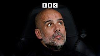 Pep Guardiola reacts to Manchester City's 2-0 win against Brentford in the League Cup.
