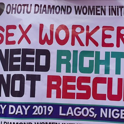 The High Court in Abuja has declared that sex work is not a criminal offence in Nigeria. It is the first time a Nigerian court has a ruled on its legality and the judgement came in a case involving 16 women who were arrested for prostitution. Amaka Narah Enemo, national coordinator for the Nigeria Sex Workers Association welcomed the court ruling. But first, let’s hear from the BBC’s Chris Ewokor in Abuja on how the case started. (Picture: Women rights activists hold a placard pointing out the rights of sex workers in Lagos. Credit: Pius Utomi Ekpei/AFP via Getty Images)